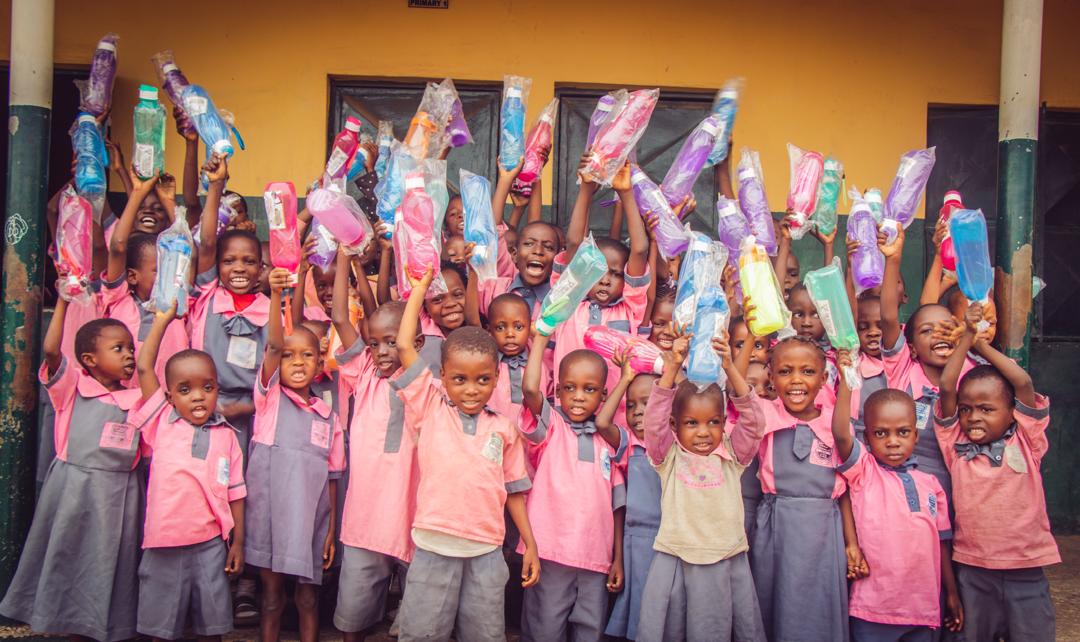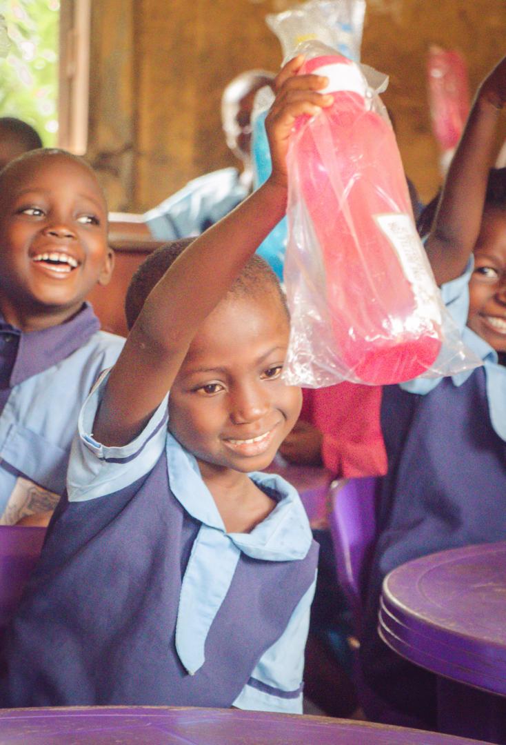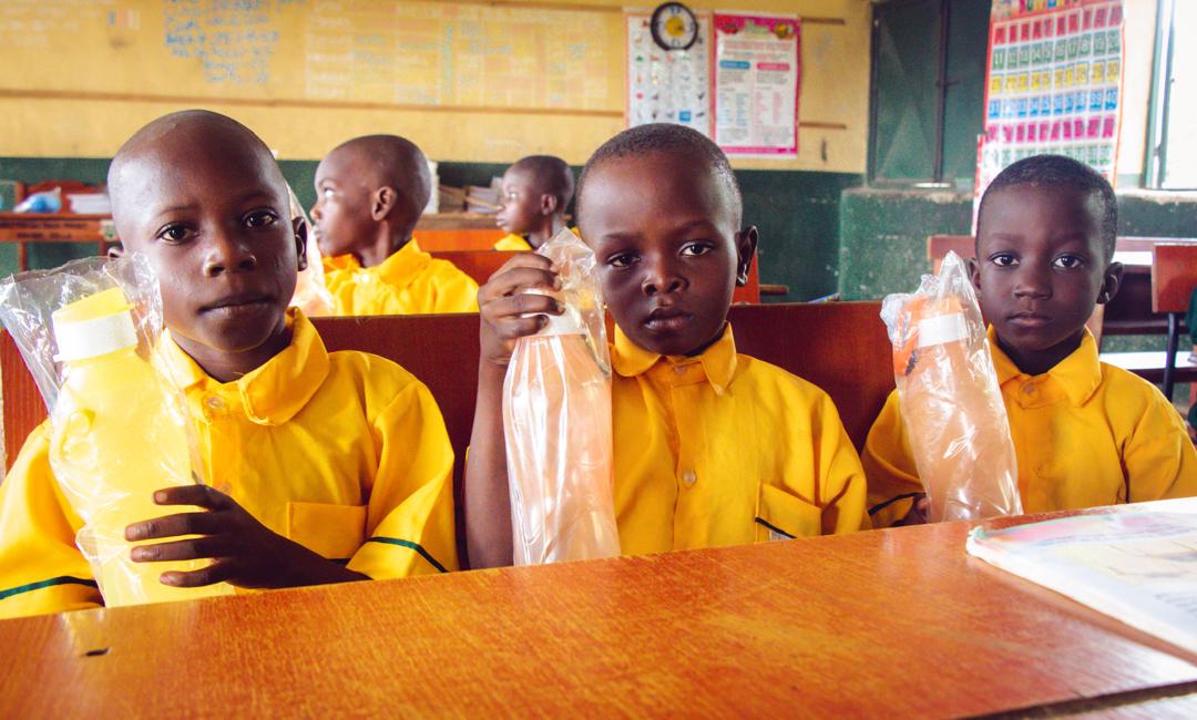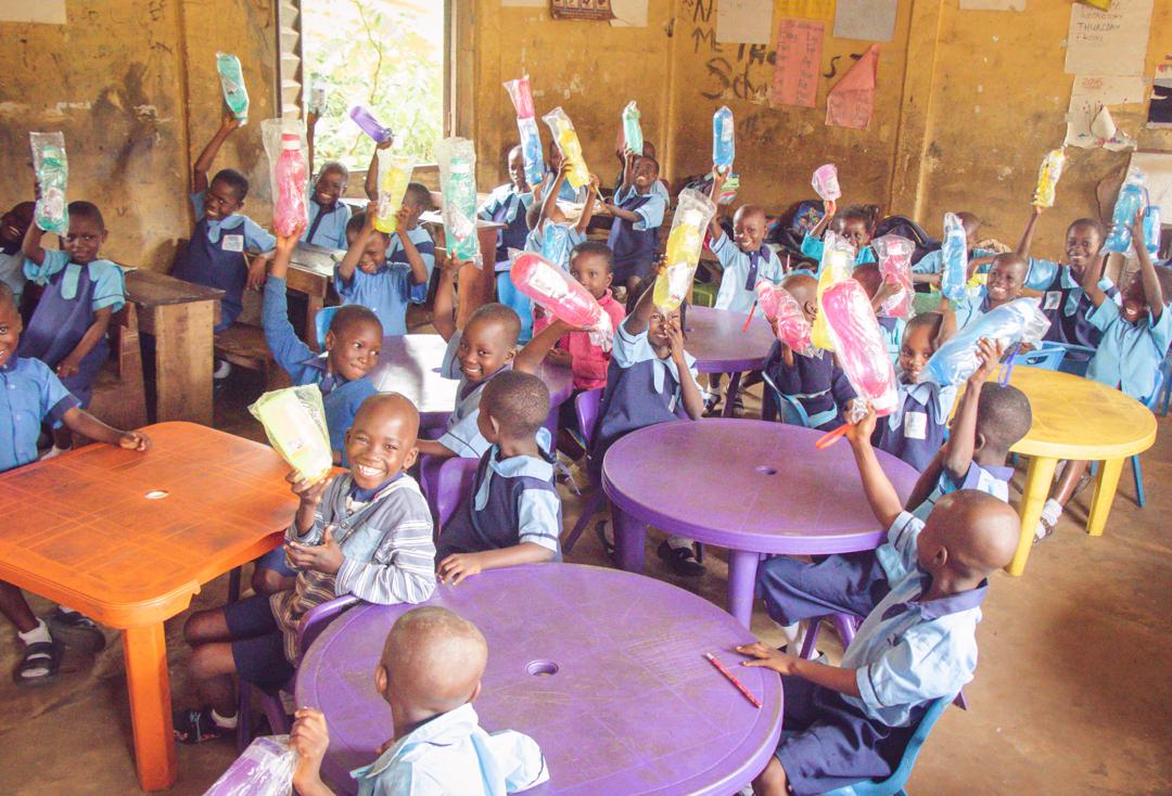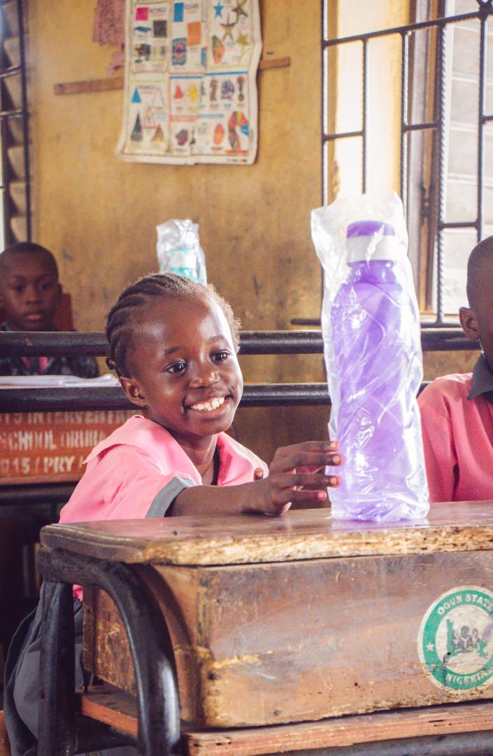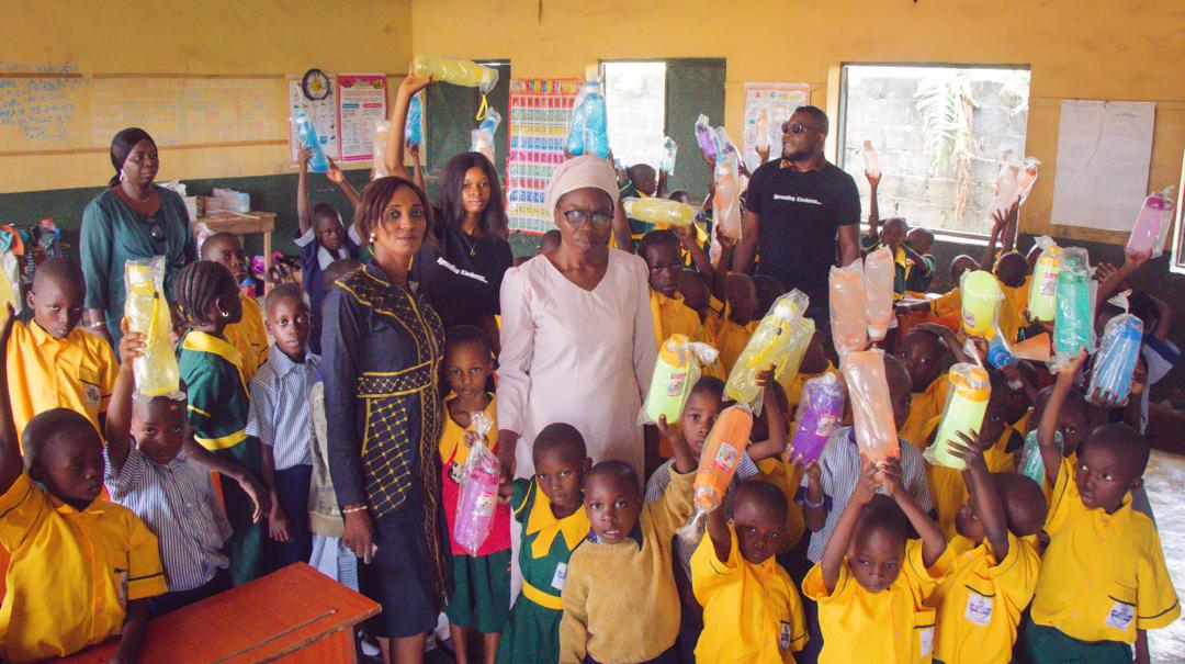 Tables and chairs were donated by mohcute charity organization to the pupils of St James Anglican Primary school Ota . as some pupils were seating on the on the floor to learn .