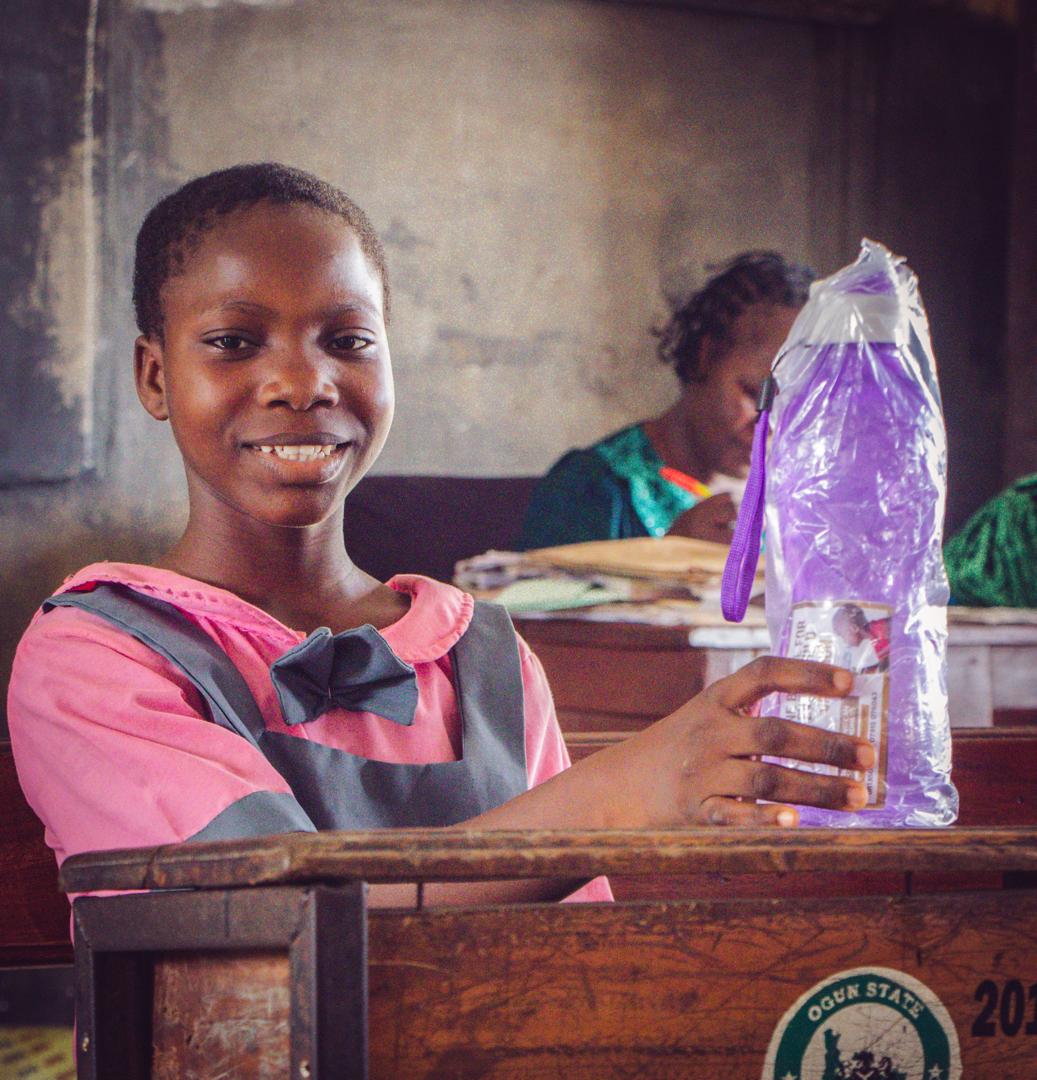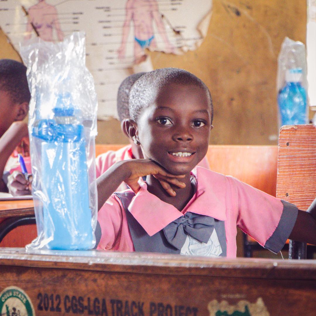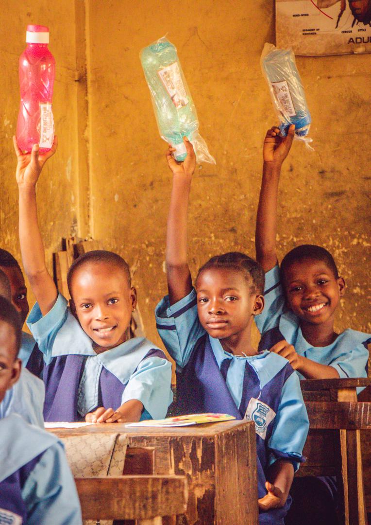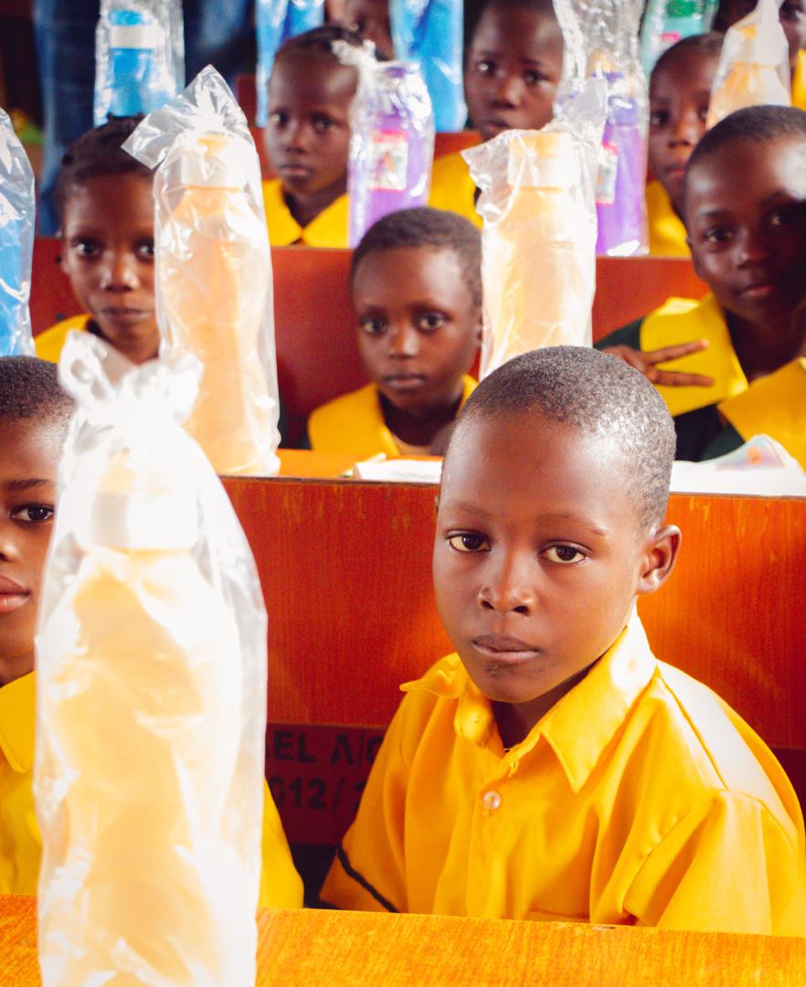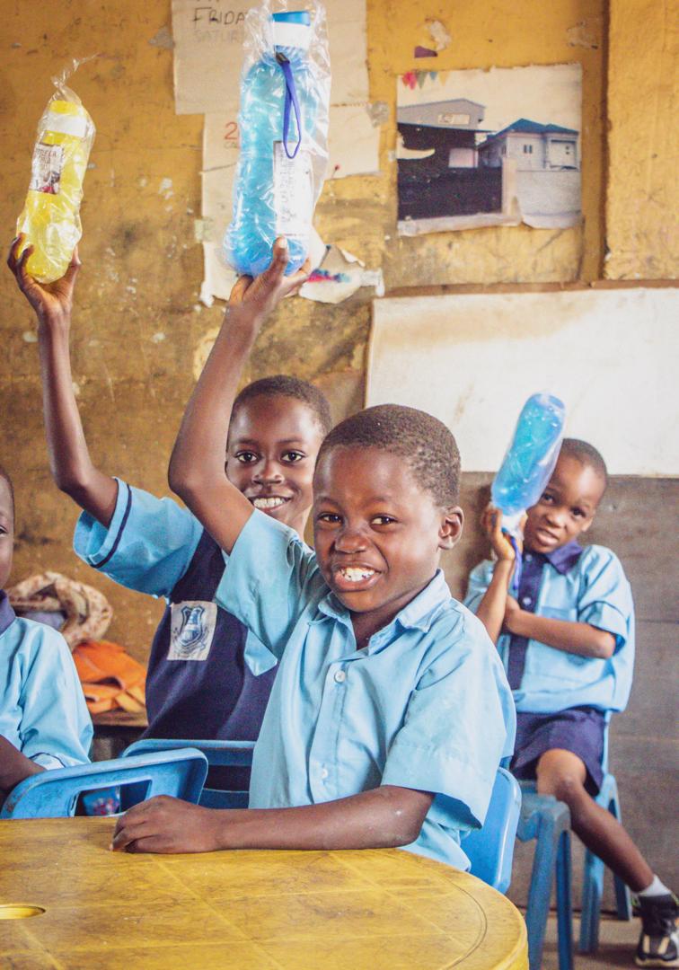 Tables and chairs were donated by mohcute charity organization to the pupils of St James Anglican Primary school Ota . as some pupils were seating on the on the floor to learn .