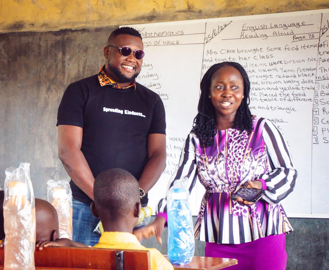 The School Head teacher doing prayers 🙏A visit to a local primary school(AUD pry school) helping to secure the future of Nigeria’s future leaders. Pulpils Tuition fees paid !!! Thank you Jesus 🙏
